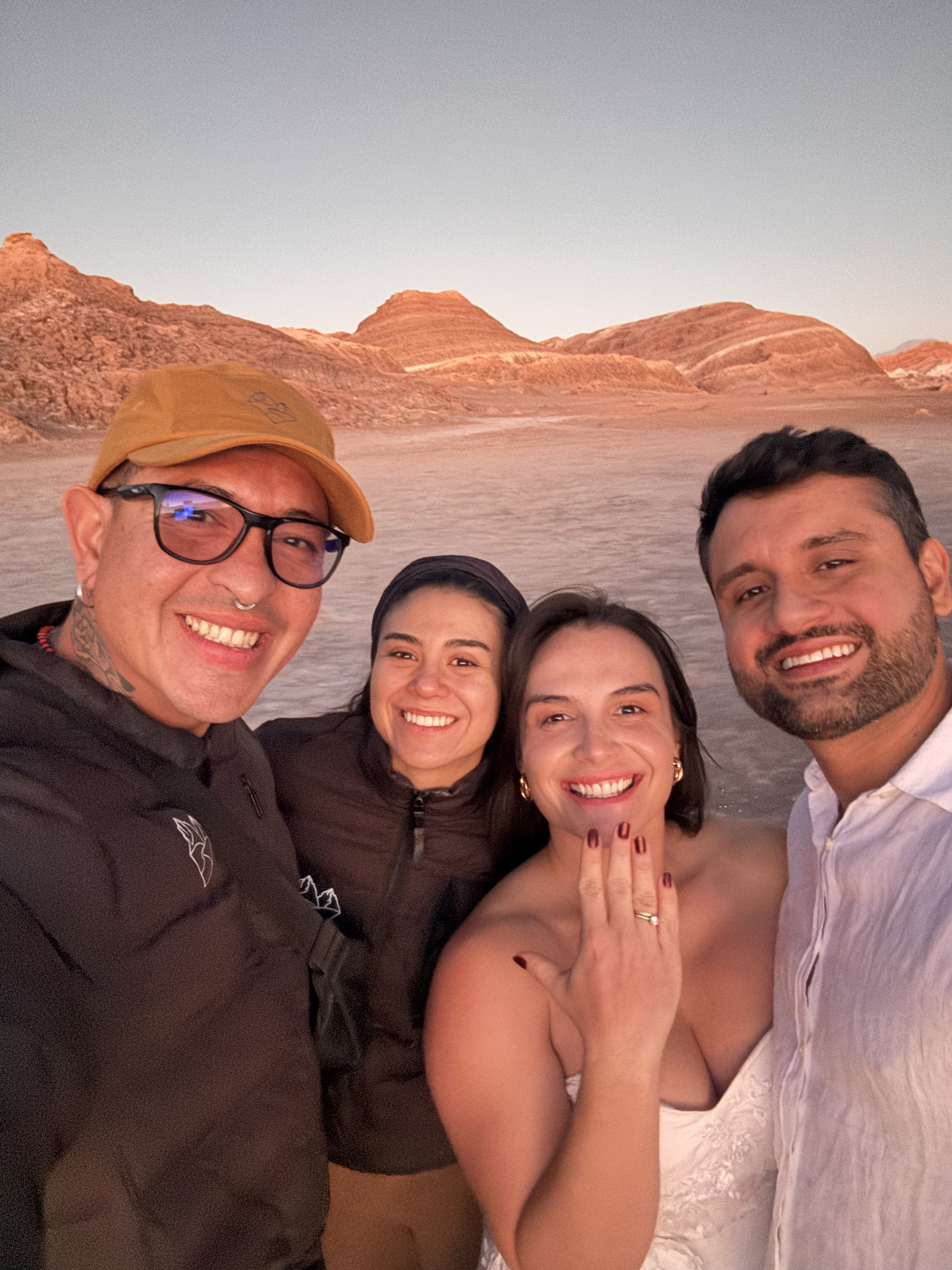 Muito obrigada, não só pelo trabalho com as fotos maravilhosas, como também o dia que passamos com vcs, o carinho que fomos tratados não tem igual, o tour completo pelo Atacama, além das fotos tivemos um guia privado.»